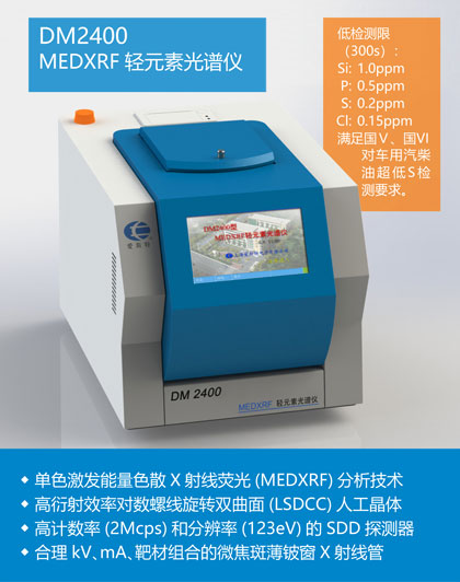 完全依據ASTM D 7220-12的DM2400S/Cl型MEDXRF微量測硫氯儀采用單色激發(fā)技術,能快速、準確、精確地分析燃料中的超低S。是實驗室和工廠進行燃料中的超低S分析的完美 ...更多